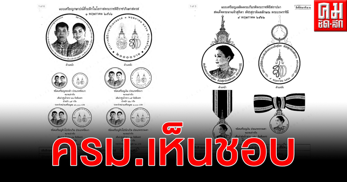ครม.เห็นชอบจัดทำเหรียญกษาปณ์ที่ระลึก “พระราชพิธีราชาภิเษกสมรส” เหรียญเฉลิมพระเกียรติ พระราชพิธีสถาปนา สมเด็จพระนางเจ้าสุทิดา พัชรสุธาพิมลลักษณ พระบรมราชินี