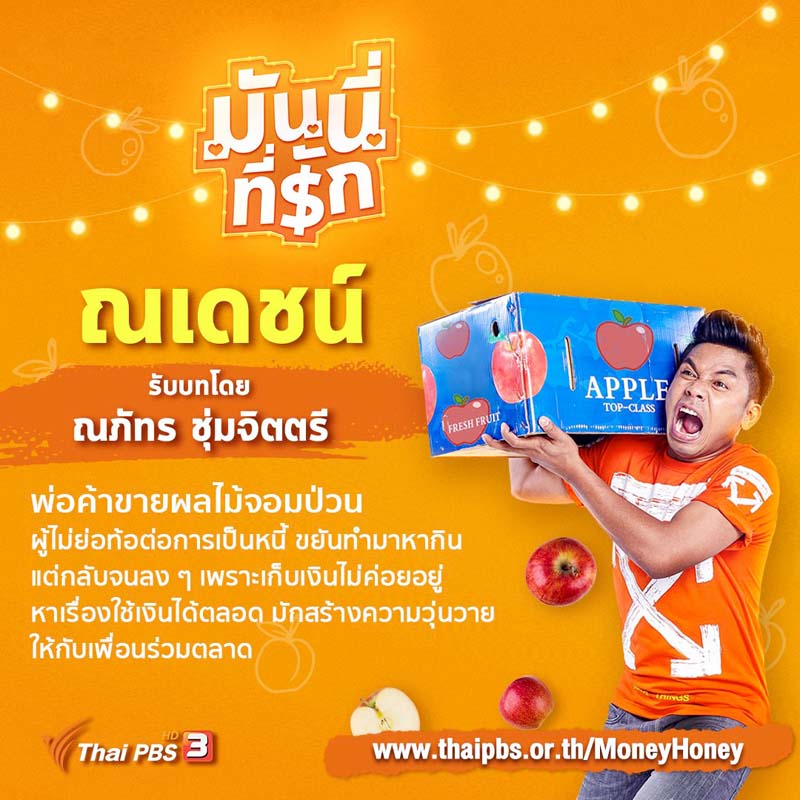 ติดตามซิทคอม “มันนี่ที่รัก”ที่หยิบยกนำประเด็นสำคัญในสังคมที่เป็นปัญหาปากท้อง มาเล่าผ่านเรื่องราวชีวิตของคนในชุมชนที่ต้องดิ้นรนทำมาหากินเพื่อความอยู่รอด ในละครซิทคอมเรื่อง “มันนี่ที่รัก” ทุกวันเสาร์-อาทิตย์ เวลา 10.30 น. ทางสถานีโทรทัศน์ไทยพีบีเอส ช่องหมายเลข 3 และรับชมอีกครั้ง เวลา 11.00 น. ทาง www.VIPA.me หรือติดตามความเคลื่อนไหวของเบื้องหลังสนุกๆ ได้ที่แฟนเพจ “ละครไทยพีบีเอส”