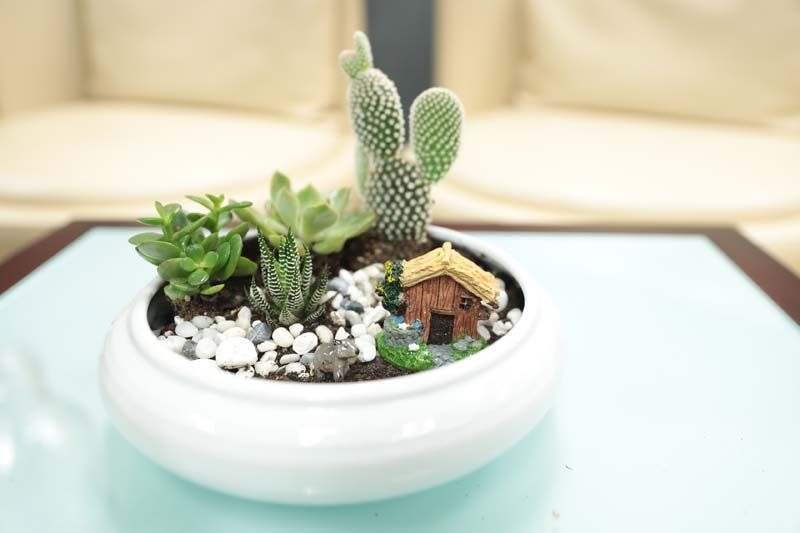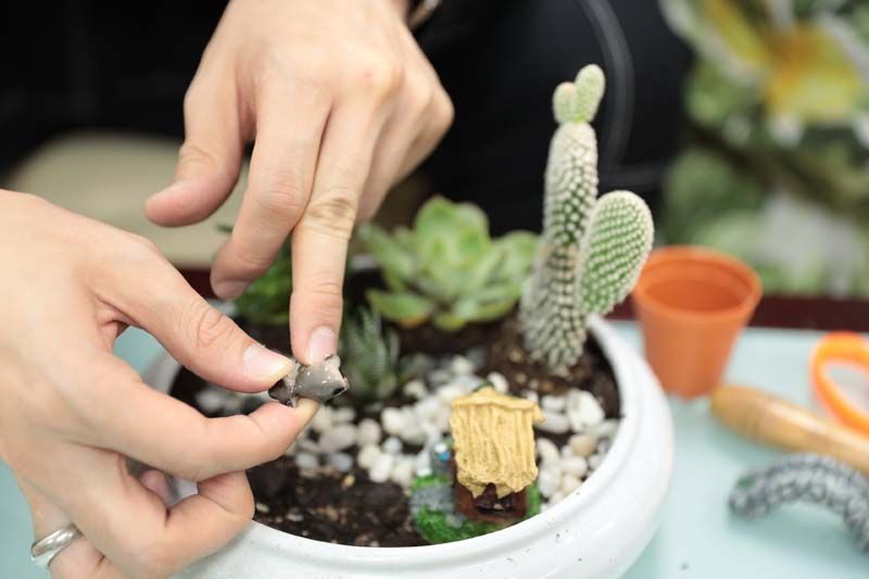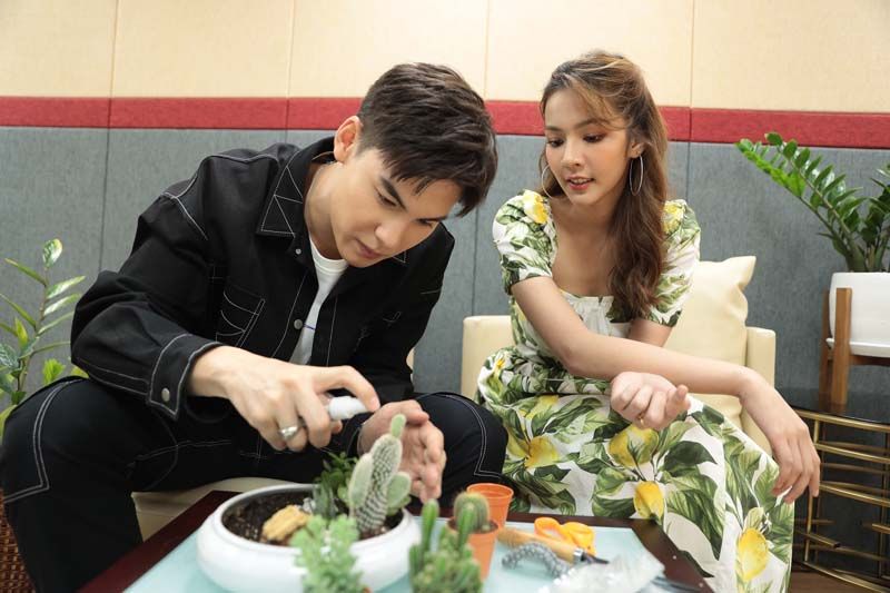 ด้าน หนุ่มบอส ขอทำหน้าที่เริ่มต้นการจัดสวนก่อนโดยเทหินภูเขาไฟซึ่งใช้เป็นฐานรองสวนถาด ตามมาด้วยดินสำหรับปลูกแคคตัส ด้วยท่าทางทะมัดทะแมงโดยเจ้าตัวเผยว่า “จริงๆ แล้วผมเองก็ปลูกเอาไว้ที่บ้านเหมือนกันครับ ผมว่าแคคตัสเป็นไม้ที่ดูแลง่าย และสวยงามนะ” ส่วน พีพี ที่ไม่เคยปลูกแคคตัสมาก่อนดูจะตื่นตาตื่นใจไม่น้อยที่ได้ลงมือทำครั้งแรก เผยว่า “พีพีชอบต้นไม้นะคะ แต่กับแคดตัสไม่เคยปลูกมาก่อน ดูวิธีการแล้วไม่ยาก การจัดสวนถาดแบบนี้ นอกจากสวยงามน่ารักแล้ว พีพีว่าดูแลได้ง่ายด้วยค่ะ” หลังจากเตรียมทุกอย่างเรียบร้อย บอส และ พีพี ก็ช่วยกันเลือกต้นแคดตัสหลากหลายพันธุ์นำออกจากกระถางพักมาปลูกลงในถาดสำหรับจัดสวน จากนั้นทั้งคู่ก็นำบ้านเซรามิกหลังน้อยมาวาง ก่อนจะแซวกันว่า นี่คือบ้านไร่สายสมรย่อส่วน เสร็จแล้วบอสและพีพีก็ช่วยกันนำหินมาเรียงเพื่อความสวยงามก่อนจะฉีดน้ำเพิ่มความชุ่มฉ่ำ ให้กับสวนถาด เป็นอันเรียบร้อย