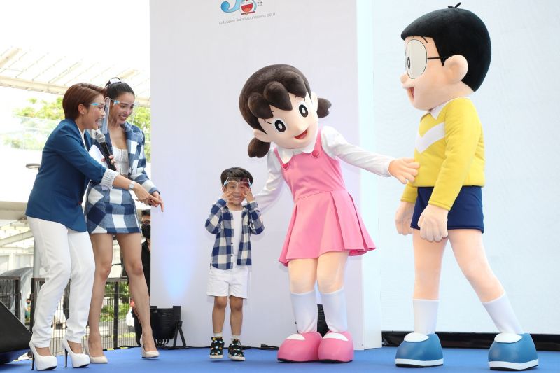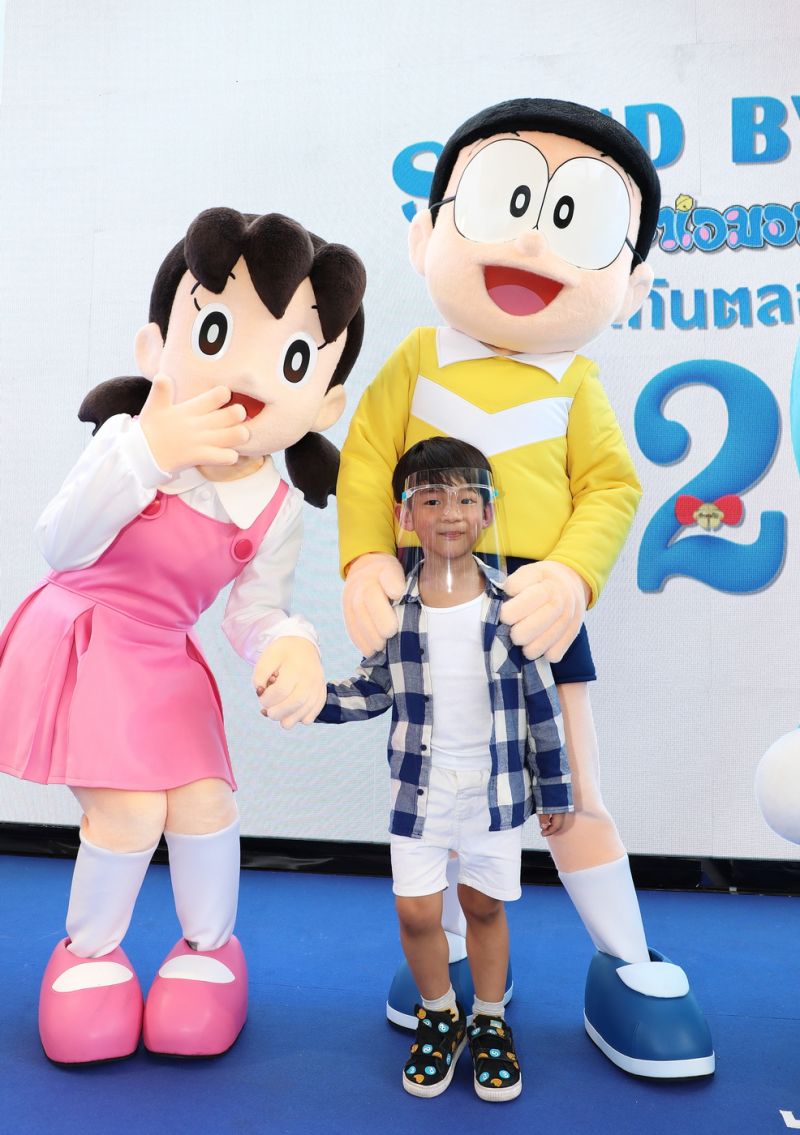 โดยในงานนี้ได้คู่แม่ลูกผูกพันอย่าง “แพท ณปภา ตันตระกูล” ควงคู่มาพร้อมกับลูกชาย “น้องเรซซิ่ง” ที่มาพูดคุยถึงความประทับใจที่มีต่อโดราเอมอน ในแบบฉบับของแม่แพทตั้งแต่ในช่วงวัยเด็กจนถึงปัจจุบัน จากนั้นถึงนาทีไฮไลท์ของงานคือการปล่อยมาสคอตคาแร็คเตอร์โดราเอมอน,โนบิตะ,ชิซุกะ และผองเพื่อนที่ส่งตรงมาจากญี่ปุ่น ทันทีที่น้องเรซซิ่งเห็นชิซุกะก็โผเข้ากอดแบบอัตโนมัติ สร้างสีสันให้ชั้น 1 ลาน Mega Plaza ศูนย์การค้าเมกาบางนา คึกคักมากขึ้นไปอีก ก่อนที่ทุกคนจะไปชมภาพยนตร์รอบพิเศษร่วมกัน ที่ขาดไม่ได้เลยก็ต้องเป็นการขึ้นเวทีถ่ายรูปร่วมกันอย่างพร้อมเพรียง ของผู้บริหารที่ทำให้งานนี้เกิดขึ้น คุณพรชัย ว่องศรีอุดมพร ประธานเจ้าหน้าที่บริหารฝ่ายภาพยนตร์ไทยและต่างประเทศ บริษัท เอ็ม พิคเจอร์ส กรุ๊ป,คุณชาน ชู ชง กรรมการผู้จัดการ บริษัท ไทยยูเนี่ยน กรุ๊ป,คุณศรัณย์ รัตนรุ่งเรืองชัย ผู้จัดการทั่วไป บริษัท ไทยยูเนี่ยน กรุ๊ป,คุณรวิษฎา ถนัดสร้าง ผู้จัดการฝ่ายการตลาด บริษัท เอไอ ไทยแลนด์,คุณอนุสรณ์ ตั้งกิจลดาวัลย์ ผู้จัดการฝ่ายการตลาด บริษัท เมเจอร์ ซีนีเพล็กซ์ กรุ้ป จำกัด มหาชน และ คุณสิรินฉัตร แสงศรี ผู้อำนวยการฝ่ายการตลาด ศูนย์การค้าเมกาบางนา ร่วมด้วย แพท-ณปภา พร้อมน้องเรซซิ่ง และเพื่อนพ้องแก๊งโดราเอมอน