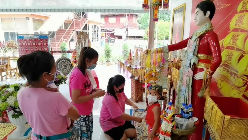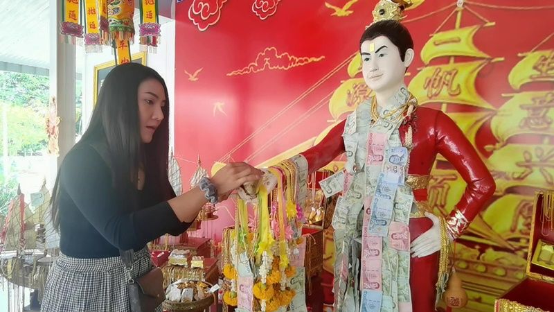 ให้เลขมาเพียบ! คอหวยขอโชคเทพเจ้าสายเฮง ‘อาตี๋ สำเภาทอง’ วัดใหม่สี่หมื่นราชบุรี
