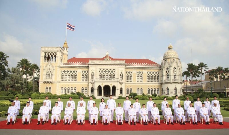 Prime Minister Prayut Chan-o-cha and his new Cabinet posed for a group photo before holding their first weekly meeting at Government House in Bangkok on Tuesday morning.
