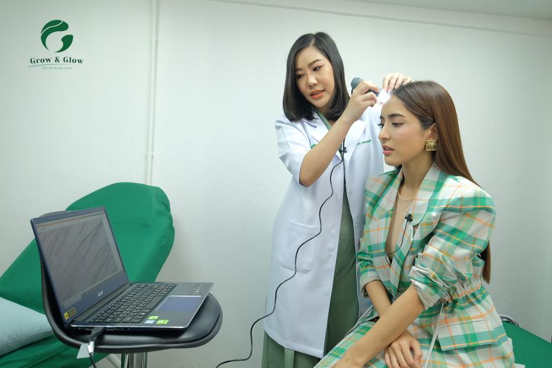 ด้าน “หมอเบนซ์” หมอผมมือท็อประดับประเทศเผยเพิ่มเติมว่า“คุณพิ้งกี้ทำงานในวงการบันเทิง ต้องทำสีผม ไดร์ผมทุกวัน แล้วก็มีปัญหาการดึงรั้งเส้นผมจากการรวบผมตึง ช่วงนี้ก็จะมีปัญหานิดหน่อย แต่ในอนาคต 4-5 ปี อาจจะมีปัญหามากขึ้น ดังนั้นเราต้องรีบดูแลค่ะหรือมาพบแพทย์ค่ะ ซึ่งการรักษาตรงนี้ไม่ได้จบที่การปลูกผมเพียงอย่างเดียว เราสามารถรักษา ชะลอด้วยการรักษาอื่นๆ ได้ เช่น การทานยา ทรีทเม้นท์ ฉายแสง เพราะฉะนั้นไม่ต้องศีรษะล้าน ผมร่วง ผมบางก็มาปรึกษาหมอได้ นอกจากปัญหาผมแล้ว หมอเองก็เป็นหมอผิวหนังมาก่อน ให้คำปรึกษาผิวหน้าได้แบบครบวงจรด้วย ยังไงก็ขอฝาก Grow & Glow Clinic (โกรว์ แอนด์ โกลว์ คลินิก)ด้วยนะคะ”