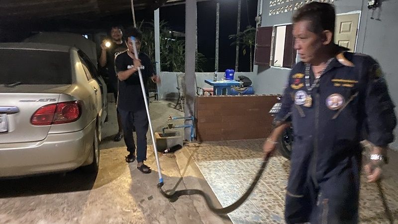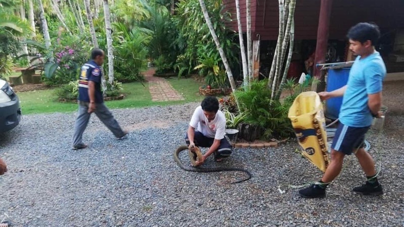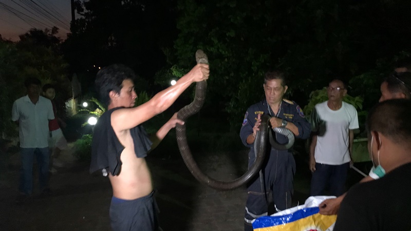 8 วัน กู้ภัยสว่างบุญช่วยเหลือออกบริการประชาชนจับงูจงอางเข้าบ้านประชาชน 10 ตัวแล้ว ด้านนักวิชาการเผยสาเหตุที่พบงูจงอางจำนวนมากเนื่องจากอากาศร้อนงูหาที่ซ่อนตัวใหม่
