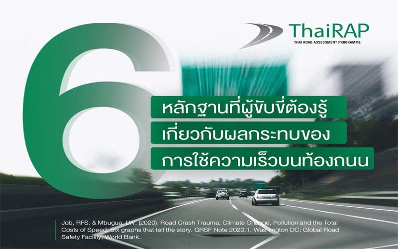 วันที่ 1 เมษายน 2564 เฟซบุ๊กแฟนเพจ “ThaiRAP” ของโครงการ Thailand Road Assessment Programme ซึ่งเป็นความร่วมมือกันระหว่างคณะวิศวกรรมศาสตร์ จุฬาลงกรณ์มหาวิทยาลัย กับองค์กร International Road Assessment Programme (iRAP) ที่มีภารกิจวิเคราะห์และประเมินผลถนนในประเทศต่างๆ ทั่วโลก โดยประเมินความเสี่ยงของผู้ใช้ทางทั้งหมด 4 กลุ่ม คือคนเดินเท้า รถยนต์ มอเตอร์ไซค์และจักรยาน จัดอันดับจาก 1 ดาวคือเสี่ยงมากที่สุด ไปถึง 5 ดาวคือเสี่ยงน้อยที่สุด เผยแพร่บทความประกอบภาพ “6 หลักฐานที่ผู้ขับขี่ต้องรู้เกี่ยวกับผลกระทบของการใช้ความเร็วบนท้องถนน” เนื้อหาดังนี้
