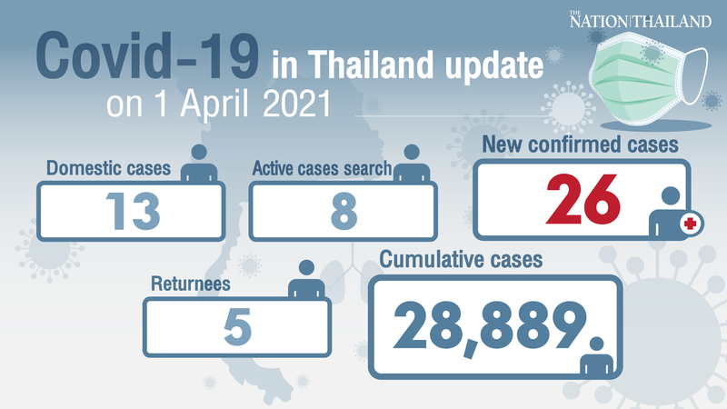 The Centre for Covid-19 Situation Administration (CCSA) on Wednesday reported 26 new cases, with 21 infections contracted locally and five brought in from overseas.