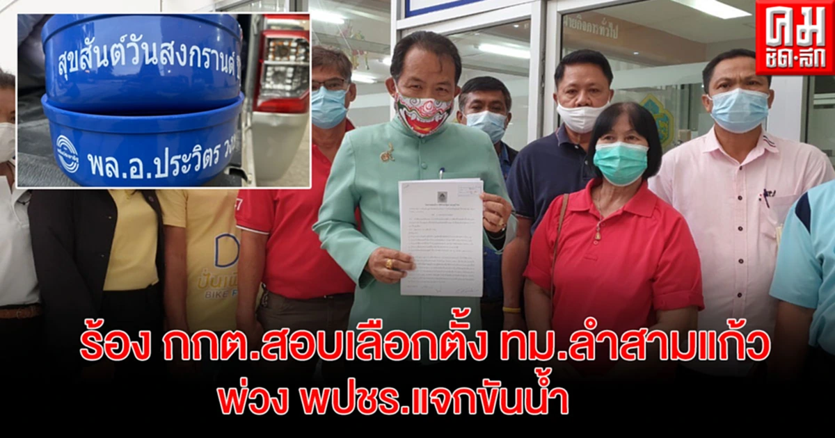 “ศรีสุวรรณ” ร้อง กกต.สอบเลือกตั้ง ทม.ลำสามแก้วและกรณีแจกขันน้ำของ พปชร.