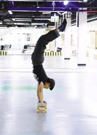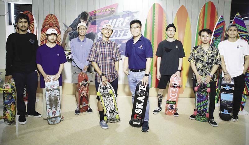 (ขวา) วิศาล สิปิยารักษ์ รอง กก.ผอ.สายการตลาด บมจ.เอ็ม บี เค และ เต๋า- ปริญญา กิจพูลลาภ นักสเก็ตบอร์ดอาชีพ