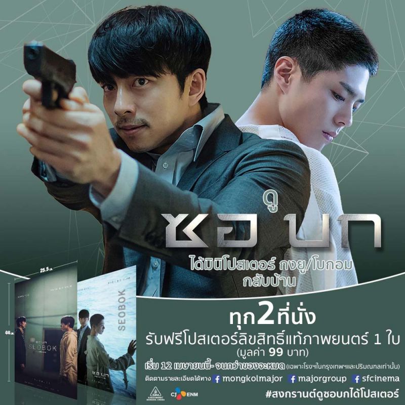 พิเศษสุดต้อนรับเทศกาลวันหยุดยาว เพียงจองบัตรชมภาพยนตร์เรื่อง “Seobok ซอบกมนุษย์อมตะ” ที่โรงภาพยนตร์ในเครือเมเจอร์ ซีนีเพล็กซ์ และ ในเครือเอส เอฟ ซีเนม่า ทุกสาขาในกรุงเทพฯ และ ปริมณฑล ทุก 2 ที่นั่ง รับฟรีมินิโปสเตอร์จากภาพยนตร์ 1 ใบฟรี มูลค่า 99 บาท (จำนวนจำกัด) เริ่ม 12 เมษายนนี้