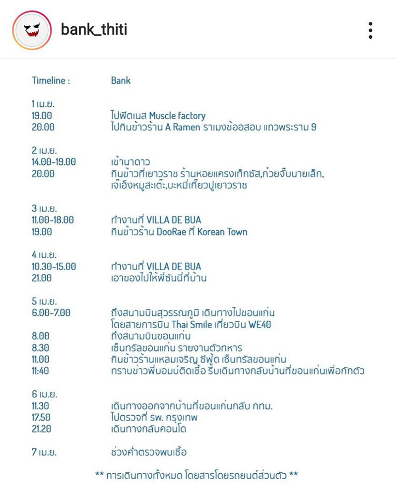 ‘แบงค์ ธิติ’ติดโควิด-19 เปิดไทม์ไลน์ละเอียดยิบ 7 วันไปไหนมาบ้าง