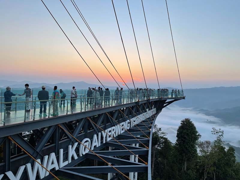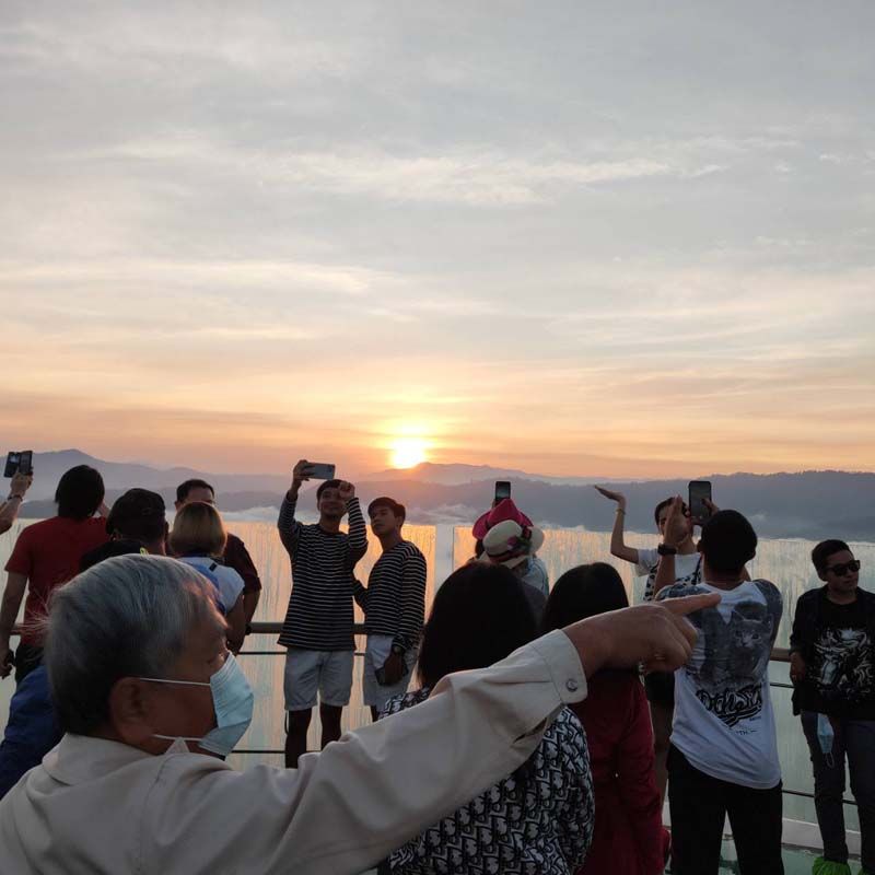 โดยในวันนี้มีนักท่องเที่ยวที่ขึ้นชมทะเลหมอกต่างบอกว่าคุ้มค่าต่อการเดินทางมาชมและก็ไม่ทำให้ผิดหวัง เมื่อได้รอคิวขึ้นอาคารที่มีทะเลหมอกเกิดขึ้นสวยงามและหนาแน่น สร้างความประทับใจให้แก่นักท่องเที่ยวเป็นอย่างมาก นักท่องเที่ยวที่ขึ้นมาบนอาคารสกายวอล์ก ต่างพากันขึ้นไปถ่ายรูปบนอาคารสกายวอล์ก ชมทะเลหมอกอัยเยอร์เวง และไฮไลต์ สำคัญ คือ ระเบียงทางเดินที่ยื่นออกไปจากฐานมีความยาวรวม 63 เมตร ส่วนปลายเป็นระเบียงชมวิวพื้นกระจกใสที่สามารถมองทะลุลงไปได้ถึงพื้นเบื้องล่าง ซึ่งสร้างเสน่ห์สีสัน และความตื่นเต้นให้แก่นักท่องเที่ยว รวมทั้งจุดเช็กอินอีกหลายจุดที่ผู้นำชุมชนและชาวบ้านร่วมกันสร้างขึ้นเพื่อให้นักท่องเที่ยวได้มีจุดที่ถ่ายภาพที่หลากหลาย โดยมีทะเลหมอก ภูเขา และแม่น้ำปัตตานีเป็นฉากหลังแตกต่างกันไป