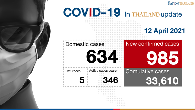 The Centre for Covid-19 Situation Administration (CCSA) on Monday reported 985 new cases, the highest number Thailand has seen on a single day since the outbreak in 2020.