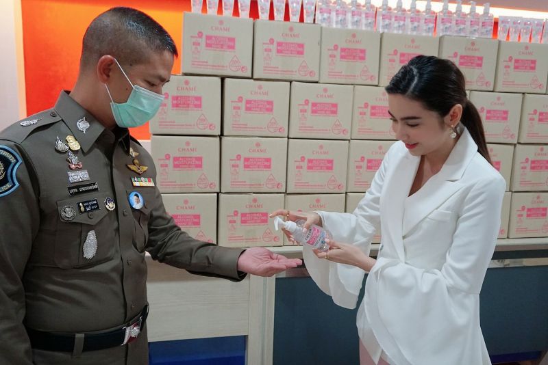 นอกจากนี้ ‘นางสาวปริษา เตชะกรเมธากุล’ ผู้บริหาร บริษัท ชาร์มมิ่งเวิลด์ฯ ได้เดินทางมอบผลิตภัณฑ์ชาเม่เจลแอลกอฮอล์ฯ ให้ชาวไทยทั่วประเทศที่เดินทางกลับบ้านอย่างปลอดภัยห่างไกลโควิด-19 ที่สถานีขนส่งหมอชิตอีกด้วยโดย ‘ดร.สัญลักข์ ปัญวัฒนลิขิต’ กรรมการผู้จัดการใหญ่และเลขานุการบริษัทขนส่งรับมอบ ซึ่งชาเม่ได้แจกให้พี่น้องประชาชนที่กำลังเดินทางกลับบ้าน งานนี้มีประชาชนได้ให้ความสนใจเป็นจำนวนมาก