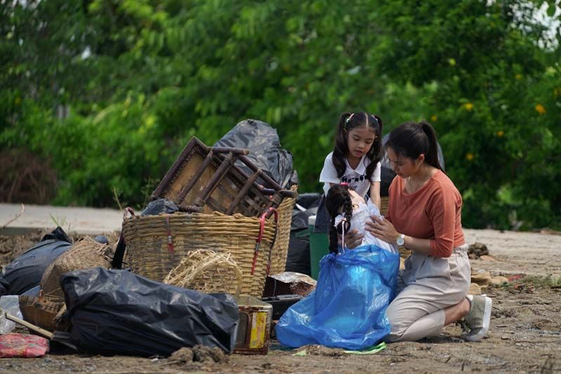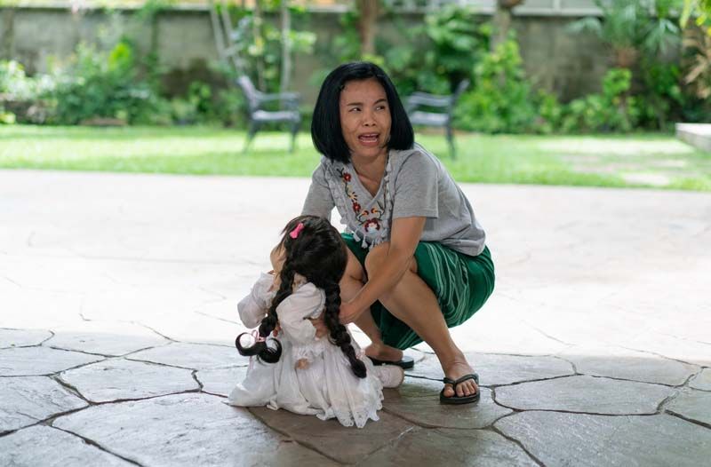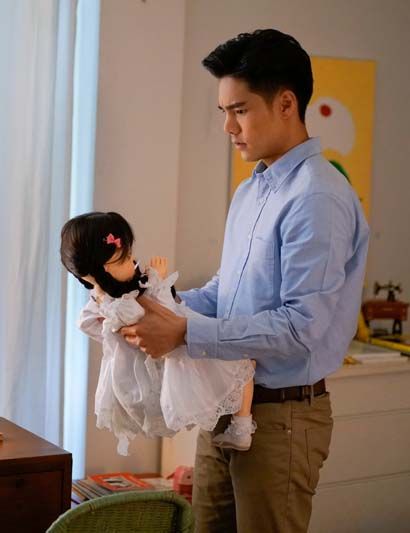 ระหว่างรอความพร้อมของกองถ่าย “แม็กกี้-บูม-น้องณิริน” ก็แท็คทีมกันมาซ้อมบทหน้าเซ็ตอย่างตั้งอกตั้งใจ เห็นเป็นเด็กหนึ่งเดียวแบบนี้เถอะ แต่เรื่องบทยาวไว้ใจ “ณิริน” หนูน้อยเค้นเต็มอารมณ์ ซ้อมไปบิวด์น้ำตาไป ได้ดั่งใจ “แม่หนิง” ซะจริง พอผู้กำกับฯ แดง บูรพา เริ่มถ่ายทำ ที่อุ่นเครื่องกันมาก่อนหน้าก็ทำให้ฉากดราม่าลูกสาวร้องไห้ กับแม่ที่สุดทนคว้า ตุ๊กตาผี มาทิ้งกองขยะ ผ่านไปได้สบายๆ ตรงใจผู้กำกับฯ มาต่อกันที่ฉากสองน้าหลาน “ใบทอง” (จาด้า อินโตร์เร) กับ “พรรษา” (รัญชนา รงควิลิด) ปั่นจักรยานมาเจอ “พี่ตุ๊กตา” ในถังขยะ หลานสาวเลยอ้อนน้าสาวขอเอากลับบ้านไปด้วย ทางด้าน “สุวภาพ” ที่รู้สึกผิดเอาของรักของลูกสาวมาทิ้ง ก็ชวน “ตัสสา” (ชาคริต บุญสิงห์) ออกมาตามหาตุ๊กตาเจ้าปัญหา ฉากนี้อาจจะดูชิล แต่ที่เป็นอุปสรรคน่าจะเป็นอากาศที่ร้อน หนุ่ม “โอ๊ต ชาคริต” โชว์แมนคอยถือร่มบังแดดให้สาวๆ ตลอดการถ่ายทำ เลยยิ่งทำให้ฉลุย ได้ต่อเนื่องกันด้วยฉากที่ “แม็กกี้” กับ “โอ๊ต” ออกมาตามหาตุ๊กตาที่เอามาทิ้งขยะ ฉากนี้ “แม็กกี้” ต้องเค้นน้ำตาความเสียใจเพราะหาเท่าไหร่ก็หาไม่เจอ เลยห่วงความรู้สึกของลูกสาว กว่าจะถ่ายกันเสร็จก็ยังไม่แน่ใจเลยว่าที่ไหลออกมาน้ำตาหรือเหงื่อกันแน่