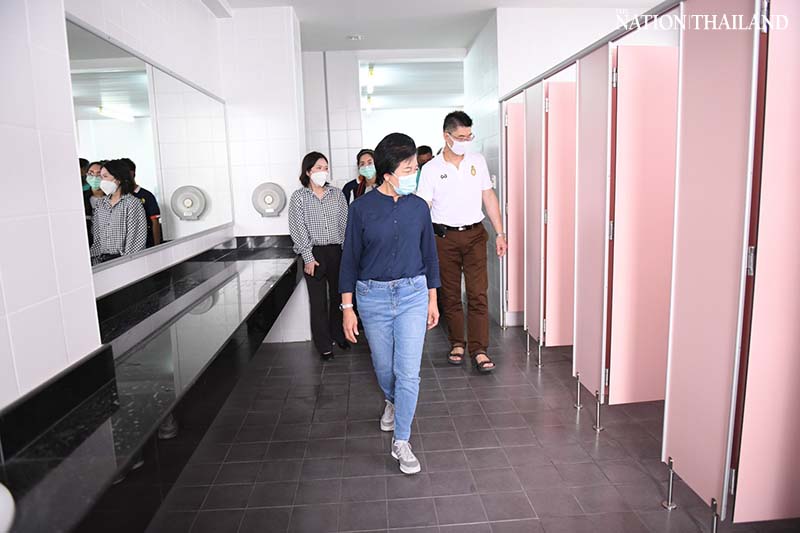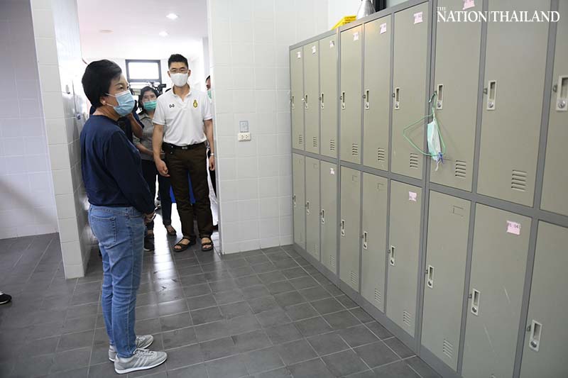 Bangkok Metropolitan Administration (BMA) permanent secretary Silapasuay Raweesangsoon and Department of Health officials checked out the 200-bed field hospital set up at the Chaloem Phra Kiat 84 Phansa Sports Centre in Bang Bon district on Monday.
