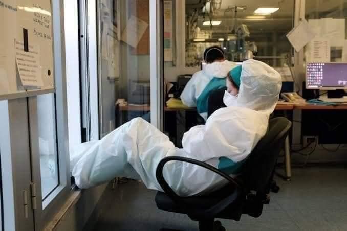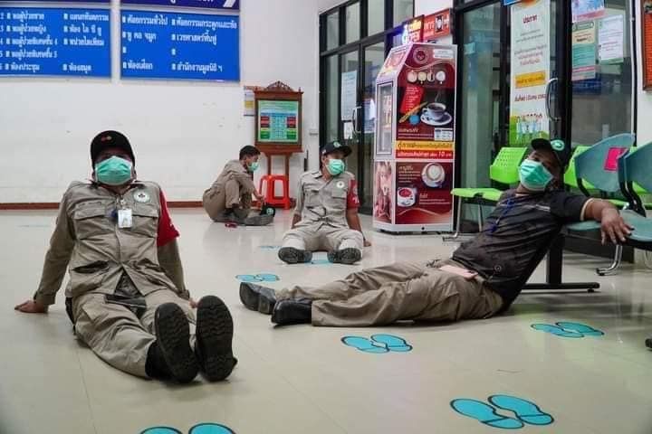 เปิดภาพจนท.โหมงานหนักสู้โควิด-19 หลับนอนคาโต๊ะ-พื้นที่ทำงาน