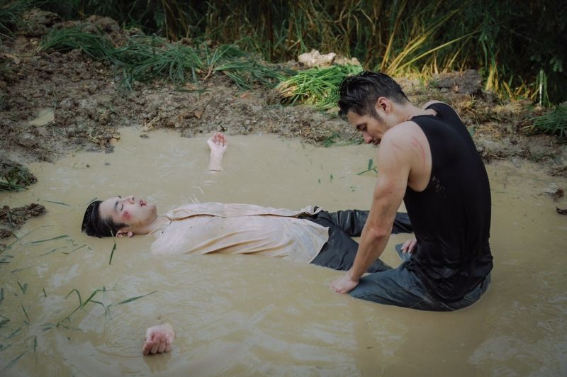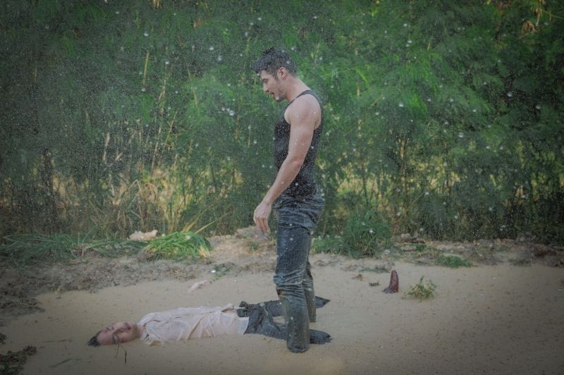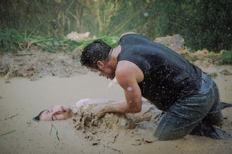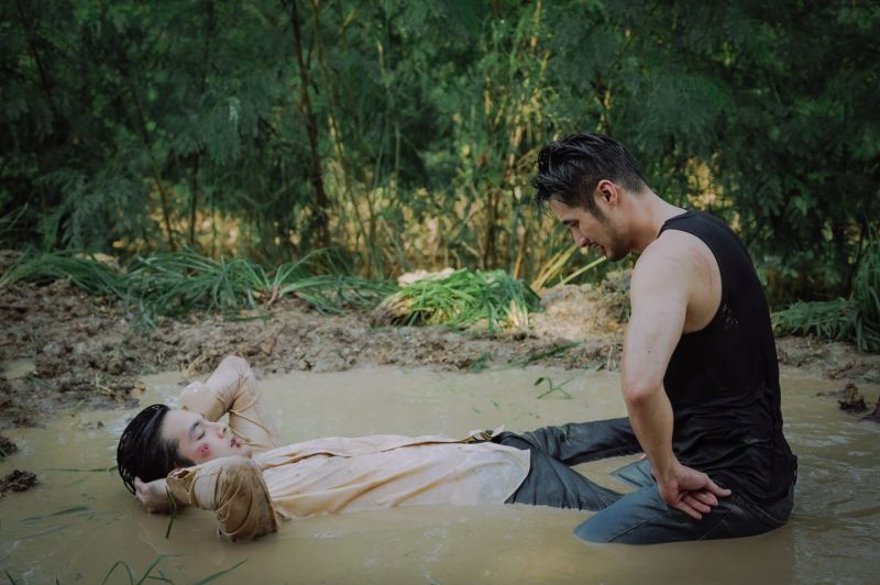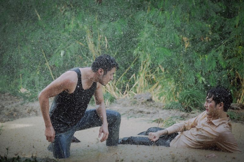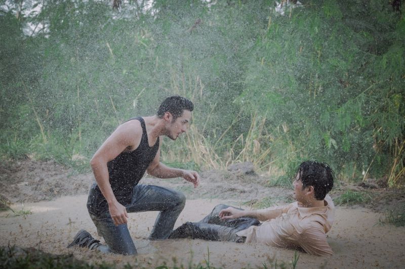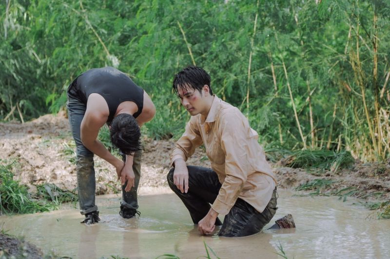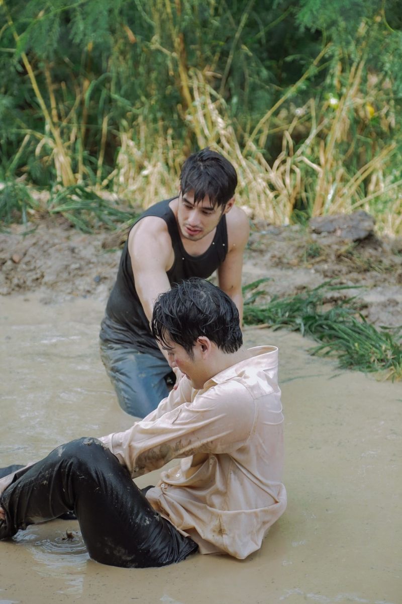 ซึ่งฉากแอคชั่นที่เราจะพาทัวร์วันนี้ เป็นฉากแอคชั่นที่พี่แอ้ว เป็นคนดีไซน์ขึ้นมา เลือกโลเคชั่นเอง เลือกมุมภาพ แสง และการออกแอคชั่นเองทั้งหมด!! เป็นฉากพีคสุดๆ ของ “บอย ปกรณ์” (ชิดตะวัน) และ “บอมบ์ ธนิน” (คทาเพชร) ซึ่งต้นเรื่องนั้นเราจะอุบไว้ก่อนว่าทำไมทั้งคู่ถึงได้มาซัดกันนัวในวันที่ฝนตกหนัก จนกลิ้งลงไปบ่อโคลนกันขนาดนี้ เพื่อไม่ให้เสียเวลาเราขอตัดไปที่ฉากแอคชั่นในบ่อโคลนกันเลยค่ะ