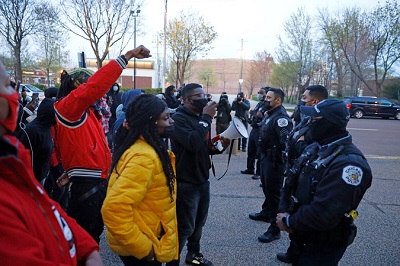 A protest began Friday evening in Little Village, a predominantly Mexican American community on the West Side of the city where Toledo grew up, posing an earlier-than-expected challenge for a police department and a city gearing up for a potential violent reaction to the conclusion of the Minneapolis trial of Derek Chauvin, whose killing of George Floyd last year ignited nationwide protests.