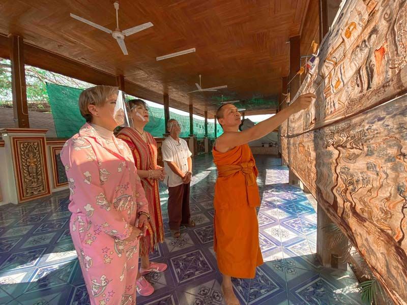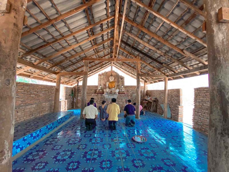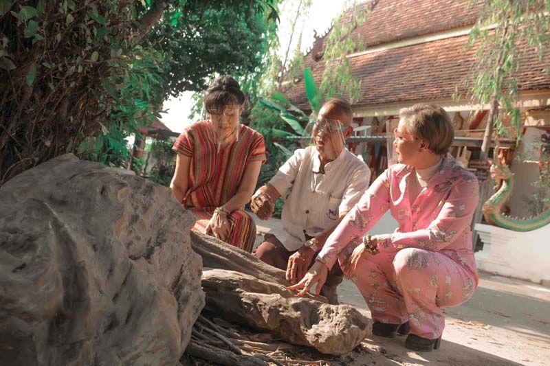 กิจกรรมแรกเริ่มต้นกันที่ วัดศรีดอนมูล เดิมชื่อว่าวัดทุ่งฮ้าง ภายในวัดมีผ้าพระบฏ ซึ่งในท้องถิ่นเรียกว่า ตุงค่าว บนผืนผ้าพระบฏเป็นภาพวาดที่บอกเรื่องราวทางพระพุทธศาสนา และยังมีไม้กลายเป็นหิน ให้คุณน้ำผึ้งและน้อยได้สัมผัสด้วยห่างจากตัวหมู่บ้านไม่ไกลยังมีเจดีย์พระธาตุปูคำน้อย สร้างในปี 2460 โดยครูบาศรีวิชัย นักบุญแห่งล้านนาได้จารึกแสวงบุญมาที่นี่ จึงได้นำชาวบ้านสร้างเจดีย์พระธาตุปูคำน้อยขึ้นและไหนๆ ก็มาเที่ยววิถีชุมชน คุณน้ำผึ้งและน้อยเลยไม่พลาดขอนอนโฮมสเตย์บ้านของชาวบ้านซะเลย