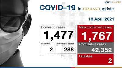 Another death reported on Sunday was a woman in Bangkok, 70, with SLD, rheumatoid arthritis and chronic kidney disease. She had high fever and difficulty in breathing on April 5. The patient was taken to hospital on April 12 and diagnosed with pneumonia and Covid-19. She passed away on April 17.