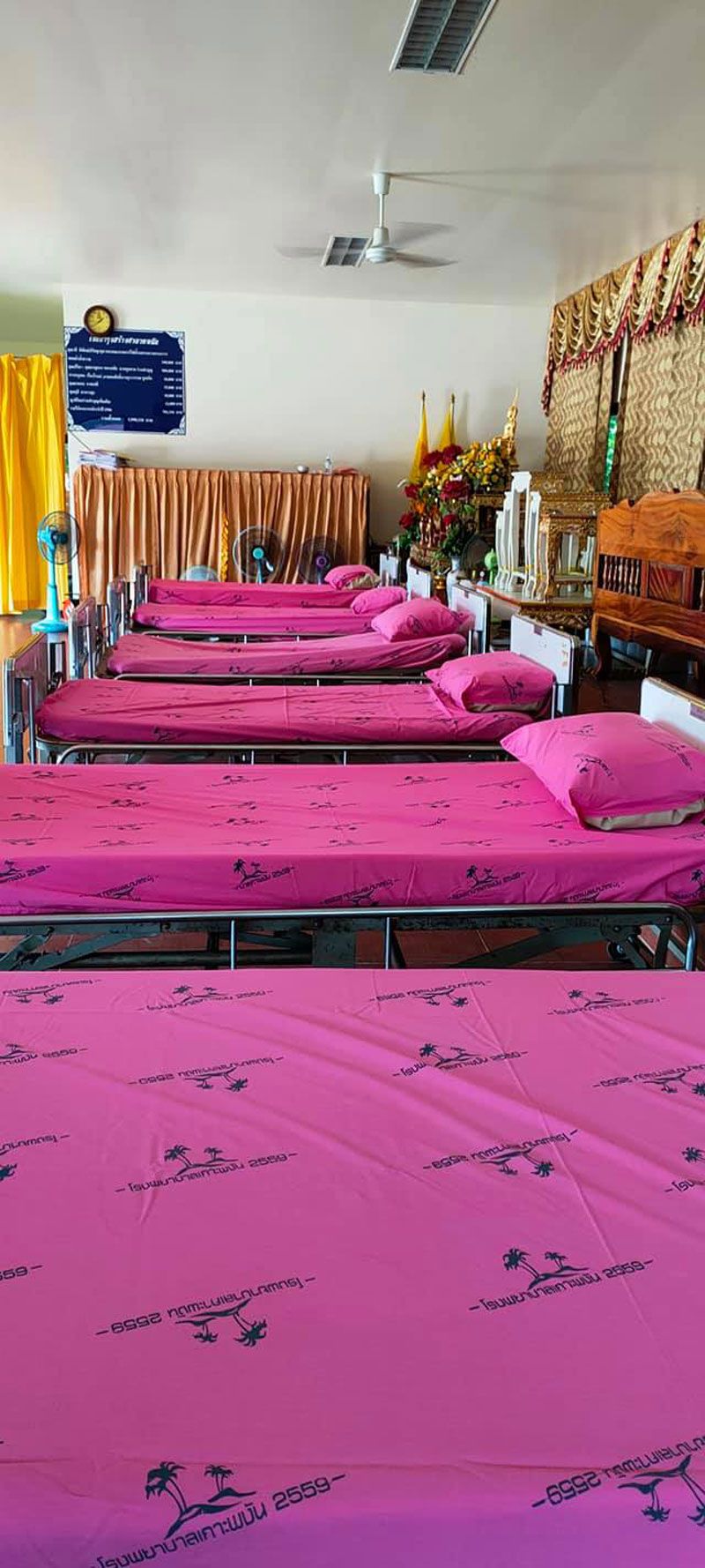 โดยเฟซบุ๊ก มีรูนะ ซัง ได้โพสต์ภาพการจัดตั้งโรงพยาบาลสนาม ในศาลาวัดอัมพวัน เพื่อรองรับผู้ติดเชื้อโควิด-19 บนเกาะพะงัน พร้อมข้อความว่า ” ขอขอบพระคุณ ท่านเจ้าอาวาสวัดอัมพวัน อำเภอเกาะพะงัน ที่เอื้อเฟื้อสถานที่ให้จัดโรงพยาบาลสนาม