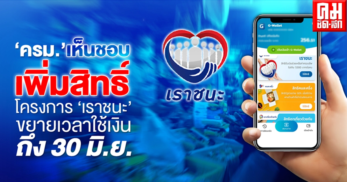 ครม.เห็นชอบเพิ่มสิทธิ์โครงการเราชนะ อีก 2.4 ล้านคน วงเงิน 3,042 ล้านบาท พร้อมขยายเวลาใช้เงินไปจนถึง30 มิถุนายน 2564