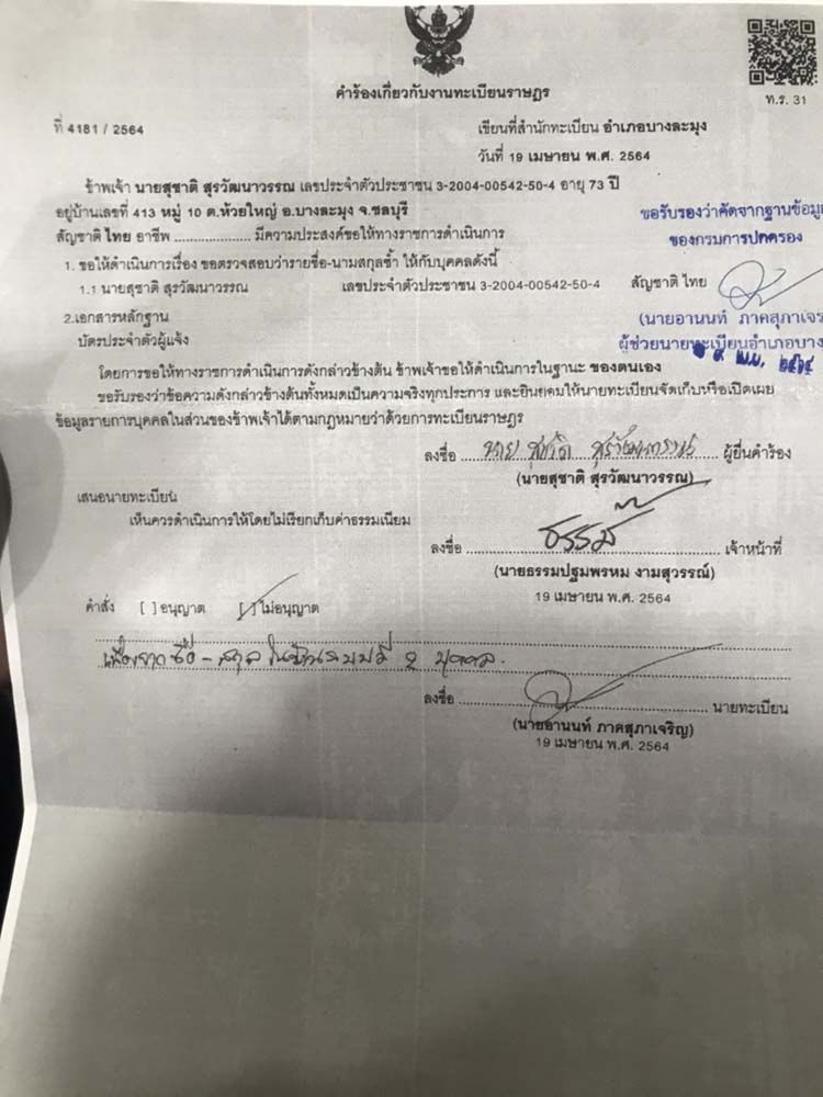 น.ส.นลินรัตน์ สุรวัฒนาวรรณ อายุ 43 ปี ลูกสาวนายสุชาติ เปิดเผยว่า ได้ติดต่อไปยังการไฟฟ้าส่วนภูมิภาค อำเภอศรีราชาแล้ว แต่ทางการไฟฟ้าก็ยืนยันว่าต้องชำระยอดที่ค้างไว้ ซึ่งตนเองก็ได้ชี้แจงไปแล้วว่า บ้านหลังดังกล่าวที่มีการใช้ไฟฟ้านั้น ไม่ใช่บ้านของพ่อตนเองอย่างแน่นอน เพราะพ่ออาศัยอยู่ในบ้านพื้นที่ห้วยใหญ่ ไม่เคยย้ายไปไหนเลย แต่ทางการไฟฟ้านั้นยืนยันว่าเป็นบุคคลเดียวกัน โดยตนเองรู้สึกสงสัยเป็นอย่างมากจึงได้ไปขอตรวจสอบยังอำเภอบางละมุง ปรากฎว่า มีบุคคลชื่อเดียวกันกับพ่อ คือนายสุชาติ สุรวัฒนาวรรณ ซึ่งเขียนเหมือนกันทุกตัวอักษร ในประเทศไทยมี 2 คน แต่ผู้ที่อาศัยอยู่ในบ้านเลขที่ตาม ที่ทางการไฟฟ้าแจ้งนั้นได้เสียชีวิตไปแล้ว ตนเองและครอบครัวก็เกิดความสงสัยว่าเพราะเหตุใดการไฟฟ้าจึงได้แจ้งขอเก็บเงินค้างชำระกับพ่อ ซึ่งไม่เคยอาศัยอยู่ในบ้านเลขที่นั้นเลย