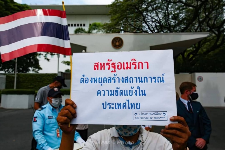 นายนิติธร กล่าวว่า การยื่นหนังสือครั้งนี้ถือเป็นครั้งที่ 2 ในข้อเรียกร้องเดิม คือ ขอให้สหรัฐอเมริกายุติการแทรกแซงความมั่นคงของชาติไทย เนื่องจากทางกลุ่มพบว่ามีแชตการสนทนาระหว่างองค์กรที่รับบริจาคเงินเพื่อเคลื่อนไหวทางการเมืองไทยกับผู้ที่ใช้ชื่อว่า Agent H ซึ่งทราบว่าเป็นบุคคลที่อยู่ในสถานทูตสหรัฐ แต่จะเป็นแชตจริงหรือไม่ก็ต้องให้เจ้าหน้าที่สถานทูตได้ตรวจสอบ นอกจากนี้ ก็ยังมีเรื่องของ ดร.เดวิด สเตร็คฟัสส์ นักวิชาการชาวอเมริกัน เป็นที่ประจักษ์ว่ามีการรับบริจาคเงินเพื่อเคลื่อนไหวดังกล่าวเข้ามาเกี่ยวข้อง