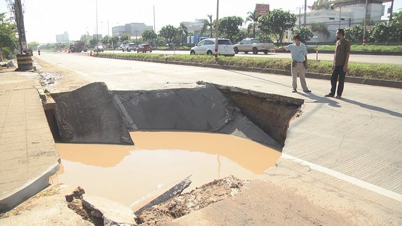 ถนนมิตรภาพเมืองโคราชยุบตัวเป็นหลุมขนาดใหญ่กว้าง 5 เมตร ลึกกว่า 2 เมตร รถยนต์เสียหลักเกิดอุบัติเหตุ 2 คัน บาดเจ็บ 3 ราย เจ้าหน้าที่แขวงทางหลวงนครราชสีมาที่ 2 ปิดถนน เร่งดำเนินการแก้ไข