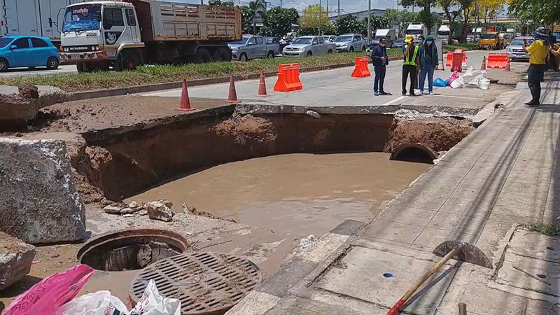 แขวงทางหลวงโคราชเร่งซ่อมถนนมิตรภาพยุบตัว เบื้องต้นคาดว่าเกิดจากท่อประปารั่ว เซาะดินไหลไปตามน้ำ จนเกิดเป็นโพรงขนาดใหญ่ใต้ผิวถนน เตรียมเปิดใช้งาน23 เม.ย. พร้อมดูแลช่วยเหลือผู้บาดเจ็บ