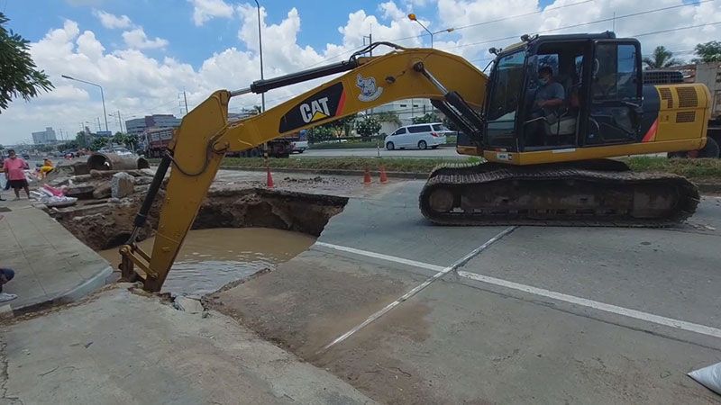 ทางหลวงรุดซ่อม! ถ.มิตรภาพยุบตัว คาดท่อประปารั่ว เซาะถนนเป็นโพรงใหญ่