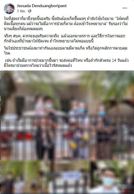 จริงๆ ศบค. ควรจะยอมรับความจริง แล้วออกมาตรการ และวิธีการในการแยกกักตัวเองที่บ้านมาให้ชัดเจน ถ้าโรงพยาบาลไม่พอแบบนี้