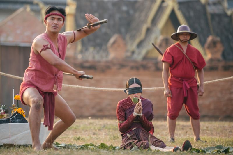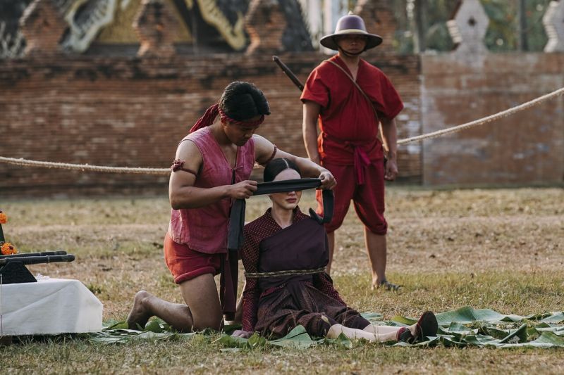 เบื้องหลังฉากนี้ ผู้กำกับ สันต์ศรีแก้วหล่อ สั่งทีมงานเนรมิตลานกว้างของสตูกันตนา ศาลายาให้กลายเป็นลานพิธีประหารของวันทอง และเพราะความยิ่งใหญ่สมจริงของฉากนี้ จึงทำให้ดูมีมนต์ขลังเป็นพิเศษก่อนถ่ายทำทีมงานพร้อมด้วยนักแสดงกว่า 50 ชีวิต ได้ทำการจุดธูปเทียน พร้อมพวงมาลัยเพื่อขอขมาเจ้าที่เจ้าทาง ให้การถ่ายทำฉากสำคัญของเรื่องสำเร็จลุลวงไปได้ด้วยดี ยิ่งโดยเฉพาะสาวใหม่ที่ดูมุ่งมั่น ตั้งใจเป็นพิเศษ เพราะการสวมบทวันทองในวันนี้ เป็นอีกหนึ่งซีนยาก ที่ต้องการกำลังใจเป็นอย่างมากเมื่อใหม่ และนักแสดง ทีมงานทุกคนพร้อม ผู้กำกับสั่งเตรียมตัวซักซ้อมคิวถ่ายทำต่างๆ หนึ่งรอบ ก่อนจะเริ่มถ่ายทำจริง เริ่มที่ ใหม่กับป้องเดินทางมาถึงยังลานประหาร พร้อมด้วยทหารคุ้มกัน ทันทีที่มาถึงปุโรหิตรีบสั่งให้ทหารพาตัวใหม่ไปที่หลักประหาร พร้อมกับให้เพชฌฆาตใช้เชือกผูกตัวใหม่เข้ากับเสา ใหม่เริ่มน้ำตาคลอ แต่ก็ยังคงทำใจดีสู้เสือ ฟากป้องได้แต่นั่งมองใหม่น้ำตาไหล เสียใจที่ไม่สามารถช่วยอะไรได้ ส่วนชาคริตที่ไม่อยากให้ใหม่ต้องตายพยายามวิ่งเข้าไปภายในลานพิธี แต่ก็ถูกทหารจับตัวไว้ จนกลิ้งล้มลุกคลุกคลานลงไปกับพื้น เมื่อใกล้ถึงเวลาประหารเพชฌฆาตนำดอกไม้ ธูป เทียน มาใส่ที่มือใหม่ ฟากใหม่รู้ได้ทันทีว่าชีวิตของตัวเองเหลือเวลาน้อยลงทุกที ก็เริ่มใจเต้นแรง ร้องไห้ออกมา เพชฌฆาตจึงเอาผ้าดำมาผูกตา และหยิบดาบมารำไปรอบๆ ตัว สักพักใหม่เริ่มนั่งนิ่งอยู่กลางลานประหารยอมรับชะตากรรมที่ตัวเองตัดสินใจเลือก ด้วยหัวใจที่เด็ดเดี่ยวและในวินาทีนั้นเองเพชฌฆาตเงื้อดาบขึ้นสุดแรง!!สุดท้ายแล้ว“วันทอง”2021จะจบลงอย่างไร?ติดตามได้ในวันอังคารที่ 20 เมษายนนี้ เวลา 20.15 น. ทางช่องวัน31 อย่าลืมว่า#นี่ไม่ใช่วรรณคดีที่คุณเคยรู้จักนะจ๊ะแม่จ๊ะแม่จ๋า