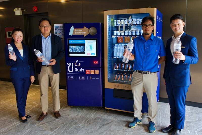 นายณัฐวุฒิ มัธยมจันทร์ ประธานเจ้าหน้าที่บริหารการพัฒนาธุรกิจพักอาศัย บริษัท สิงห์ เอสเตท จำกัด (มหาชน) กล่าวว่า บริษัทมุ่งเน้นการสร้างคุณภาพชีวิตที่ดีให้กับลูกบ้านและคำนึงถึงผลกระทบจากปัญหาขยะในชุมชน จึงได้จัดทำโครงการ “ฃ ขวด คืนค่า”ที่ติดตั้งตู้รีไซเคิลขวดพลาสติก หรือ RVM (Reverse Vending Machine)เพื่อส่งเสริมให้ลูกบ้านในโครงการThe ESSE เกิดความเข้าใจในการแยกขวด PET ออกจากขยะประเภทอื่นๆโดยพลาสติกที่ได้จะถูกนำเข้าสู่กระบวนการรีไซเคิลต่อไป