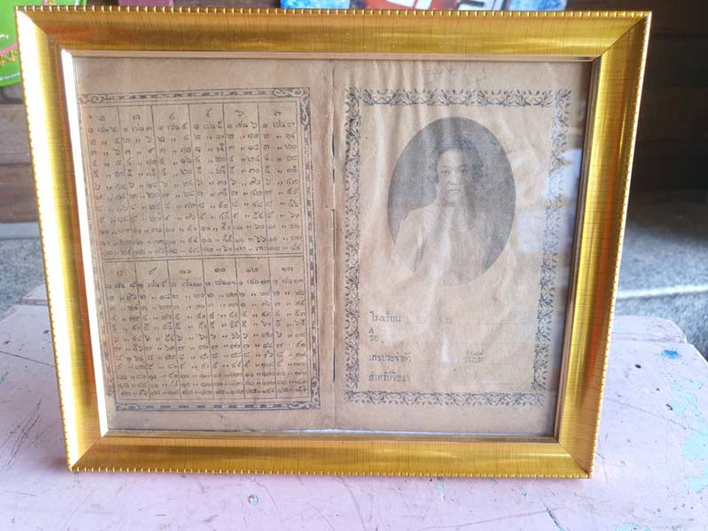 จากการสังเกตสมุดโบราณเล่มนี้พบว่าปกด้านหน้าเป็น พระฉายาลักษณ์ หรือรูปพระรำไพพรรณีพระราชินีรัชกาลที่ 7 และ พิมพ์โรงเรียน,ชื่อ ,วิชา, เลขประจำตัว,ชั้นปี ,สำหรับวิชา และปกด้านหลังมีพิมพ์แม่สูตรคูณแม่ 1 ถึงแม่ 13 ซึ่งสมุด อาจารย์และน่าจะมีการบันทึก เขียนเป็นอักขระภาษาล้านนาหรือภาษาขืน เต็มทุกหน้า ที่เขียนด้วยลายมืออย่างสวยงาม ซึ่งมีสภาพสมบูรณ์เกือบร้อยเปอร์เซ็นต์ เส้นทางเจ้าอาวาสได้ทำการนำมาใส่กรอบไว้อย่างดีและเก็บไว้ภายในตู้ ไม้ไว้อย่างดี