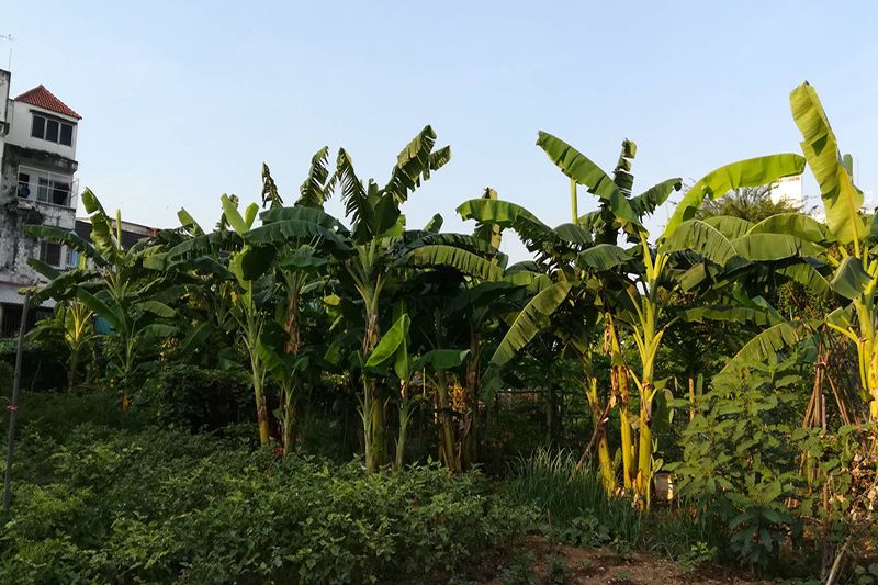 สภาพที่ดินที่ตั้งอยู่บริเวณถนนพระองค์ดำ อยู่กึ่งกลางระหว่างวัดใหม่อภัยราม และสี่แยกบ้านแขก เป็นที่ดินทำเลทองใจกลางเมืองพิษณุโลก ที่แต่เดิมถูกปกคลุมด้วยวัชพืช ชาวบ้านละแวกนี้ ได้ช่วยกันมาปรับทาง ปรับสภาพปลูกพืชผักสวนครัวหลากหลายชนิด ในวันนี้ ได้เก็บขายพืชผักระยะสั้น ทั้งพริก ผักชี ผักบุ้ง กวางตุ้ง คะน้า กระเพรา โหระพา ออกขายตลาดทุกวัน ที่เหลือก็นำไปแบ่งปันแจกผู้คนในละแวกนี้กับนำไปประกอบอาหารในครัวเรือน กล้วยน้ำว้า มะละกอ 1 ปีผ่านไปยืนต้นใหญ่ เริ่มออกผลผลิต ได้เก็บทั้ง เครือกล้วย ใบตอง และมะละกอขาย