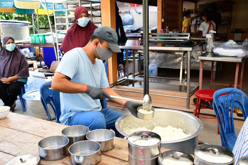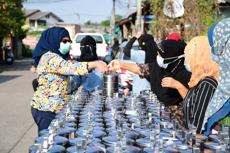 สำหรับการปรุงอาหารและแจกจ่ายอาหารใช้การแจกด้วยปิ่นโตเพื่อให้สมาชิกที่เป็นชาวมุสลิม ฯลฯ ที่เข้าร่วมโครงการไปรับและนำไปรับประทานที่บ้านแทนการจัดเลี้ยงด้วยโรงทานตามมัสยิดต่างๆ เหมือนที่ผ่านมา เนื่องจากมีการระบาดของไวรัสโควิด-19 ในช่วงนี้ขณะที่การทำบุญด้วยการให้อาหารในช่วงเดือนรอมฎอนก็ยังเป็นสิ่งที่ได้ยึดถือปฏิบัติกันอยู่
