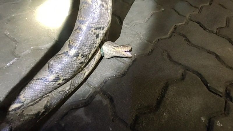 ทั้งนี้คาดว่างูตัวดังกล่าวได้หนีน้ำขึ้นมา เนื่องจากช่วงนี้เกิดฝนตกหนักติดต่อกันหลายวัน ทำให้พื้นที่บางส่วนตามพงหญิงเกิดน้ำท่วมขัง ทำให้งูอยู่ไม่ได้จึงต้องเลื้อยขึ้นมาอาศัยอยู่ตามตลาด ชุมชน และบ้านเรือนประชาชน