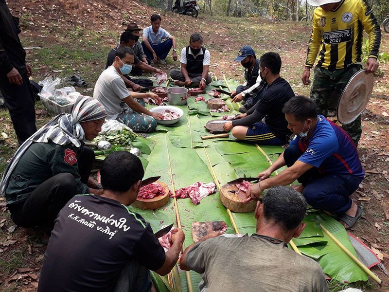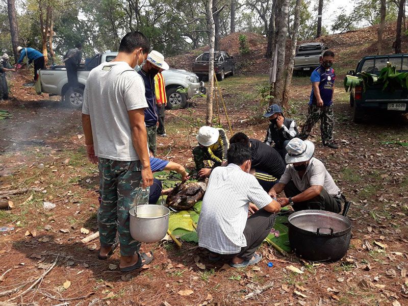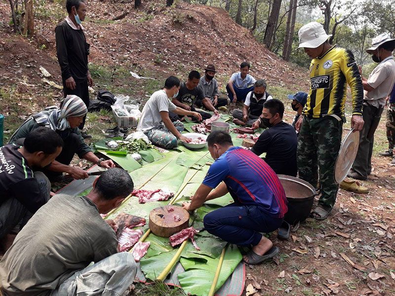 เมื่อวันที่ 25 เมษายน 2564 นายไพบูลย์ ชอบพอ ผู้ใหญ่บ้านห้วยแก้ว ต.แม่ฮี้ อ.ปาย จ.แม่ฮ่องสอน เปิดเผยว่า ชุมชนบ้านแม่ปิง บ้านห้วยแก้วและบ้านท่าปาย ต.แม่ฮี้ อ.ปาย จ.แม่ฮ่องสอน ได้ส่งตัวแทนบ้านละ 6 – 7 คน ร่วมร่วมกันเลี้ยงเจ้าที่ เจ้าป่า เจ้าเขา ในเขตอนุรักษ์พันธ์สัตว์ป่าที่ชุมชนร่วมกันดูแลรักษา ทุกๆ 3 ปีจะมีการเลี้ยงครั้งหนึ่ง ห้ามมิให้ผู้ใดล่าสัตว์ทุกชนิดในเขตหวงห้าม พื้นที่นี้กำหนดโดยชุมชน การเลี้ยงเจ้าที่เจ้าป่า ครั้งนี้มีเจ้าหน้าที่อุทยานร่วมเป็นสักขีพยานจำนวน 4 นาย