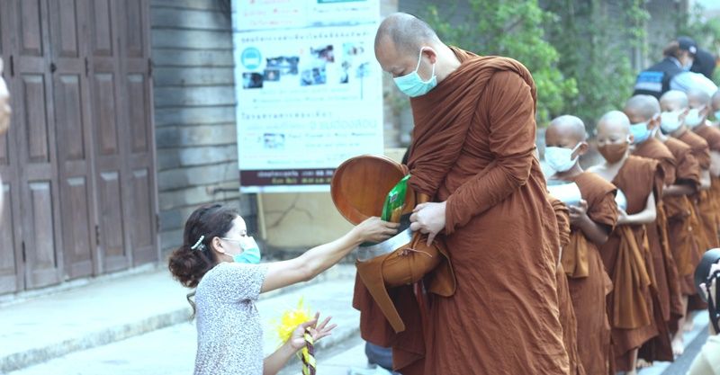 เจ้าอาวาสวัดสวนธรรมภูสมะณาราม บ้านกุงไม้สัก ตำบลปางหมู อำเภอเมืองแม่ฮ่องสอน นำสามเณรน้อย 85 รูป สวมแมสออกรับบิณฑบาตรญาติโยม สร้างขวัญกำลังใจ นช่วงโควิด 19 ระบาด