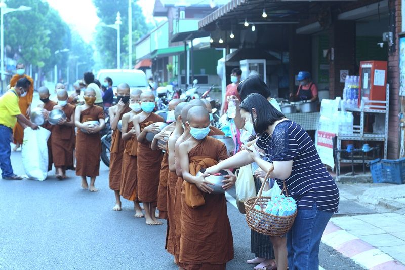 เมื่อเช้าวันที่ 26 เม.ย.64 พระปลัดจิตตพัฒน์ อัคคปัญโญ เจ้าอาวาสวัดสวนธรรมภูสมะณาราม นำสามเณรน้อยจำนวน 85 รูป สวมแมสออกรับบิณฑบาตรที่บริเวณถนนสิงหนาทบำรุง ต.จองคำ อ.เมือง จ.แม่ฮ่องสอน โดยมีคณะศรัทธา ญาติโยม รอทำบุญตักบาตรข้าวสาร อาหารแห้ง เป็นจำนวนมาก