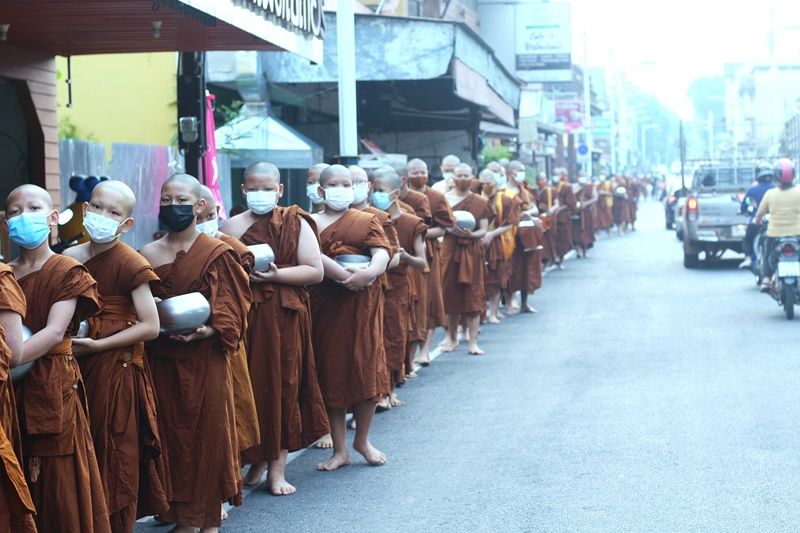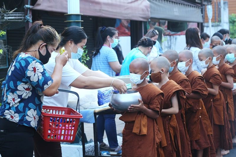 น่ารักแถมดูแล้วได้บุญ! ฝึกเณรน้อยสวมแมสบิณฑบาตรปฏิบัติธรรม
