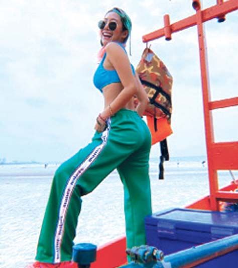 ใครที่มองหาไอเดียแต่งตัวไปทะเล ต้องลองลุคสุดเท่และเปรี้ยวจี๊ดของว่าที่เจ้าสาว เนะ-อโณทัย นิรุตติเมธี หวานใจหนุ่มนต-ปณต คุณประเสริฐ โดยสาวเนะจับความเท่ของ กางเกงแทรคแพนท์ ดีไซน์ขาปล่อยสีเขียว และ Bikini Tops ดีไซน์สปอร์ต สีฟ้า