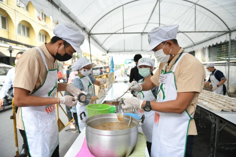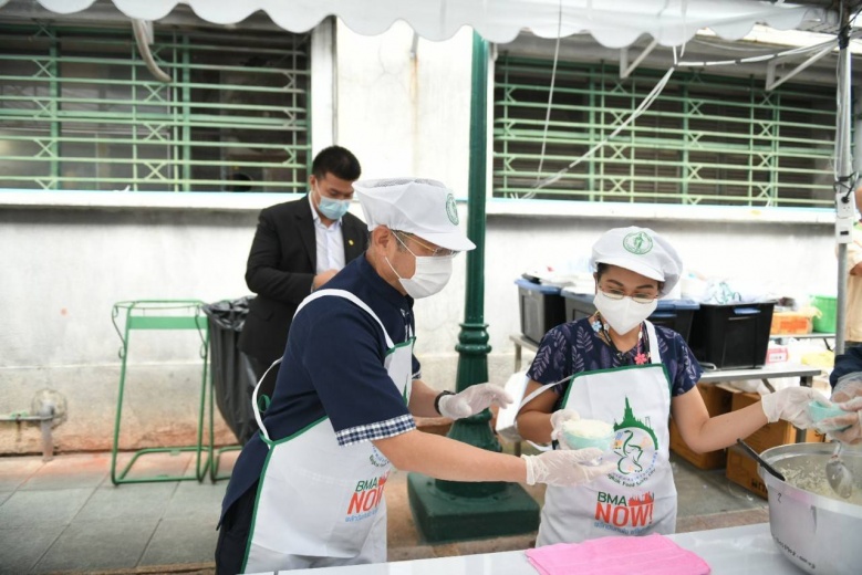 โดยมี ผู้บริหารกรุงเทพมหานคร ผู้อำนวยการสำนักพัฒนาสังคม ร่วมให้กำลังใจเจ้าหน้าที่ผู้ปฏิบัติงานโรงครัว ณ บริเวณด้านข้างศาลาว่าการกรุงเทพมหานคร (เสาชิงช้า) ฝั่งถนนศิริพงษ์