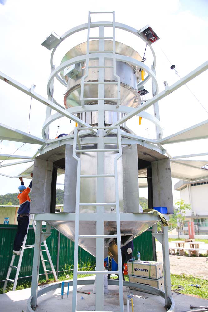 รศ.ดร.สุภกร พงศบางโพธิ์ อธิการบดีมหาวิทยาลัยพะเยาได้มอบหมายให้ ดร.ชัชวาล วงค์ชัย ผู้ช่วยอธิการบดี ดูแลการติดตั้งหอฟอกอากาศอัตโนมัติแบบไฮบริด (Hybrid Air Purifier tower) ณ บริเวณลานสนามกีฬากลางแจ้ง มหาวิทยาลัยพะเยา เมื่อวันที่ 3 พฤษภาคม 64 โดยได้ทำการลงพื้นที่ พร้อมด้วยทีมงานนักวิจัย เพื่อทดสอบการติดตั้ง และตรวจสอบความเรียบร้อยของหอฟอกอากาศ ผ่านการร่วมมือของนักวิจัยมหาวิทยาลัยพะเยา ผศ.ดร. ธนาทิพย์ จันทร์คง คณะวิศวกรรมศาสตร์ หลักสูตรวิศวกรรมไฟฟ้า และ ดร.ปฎิพัทธ์ วงค์เรือง คณะสาธารณสุขศาสตร์ หลักสูตรอนามัยสิ่งแวดล้อม โดยขนาดหอฟอกอากาศนี้มีขนาด 2.4*2.4*5.1 เมตร โดยหลักการทำงานระบบการกำจัดฝุ่น Jet Venturi Scrubber จะเป็นการพ่นละอองน้ำขนาดเล็กเพื่อดักฝุ่น และมีระบบดูดอากาศจากด้านบนตัวเครื่องผ่านระบบการจัดการฝุ่นและฆ่าเชื้อ และพ่นอากาศที่บริสุทธิ์ได้ในรัศมี 20 ถึง 25 เมตร โดยตัวเครื่องได้ใช้พลังงานแสงอาทิตย์ในการขับเคลื่อน โดยการติดตั้งหอฟอกอากาศเครื่องแรก ในปี 63 ในโครงการ 101 True Digital Park กรุงเทพมหานคร เครื่องที่ 2 บริเวณสถานีรถไฟฟ้าแอร์พอร์ต เรล ลิงค์ มักกะสัน และเครื่องที่ 3 ณ มหาวิทยาลัยพะเยา