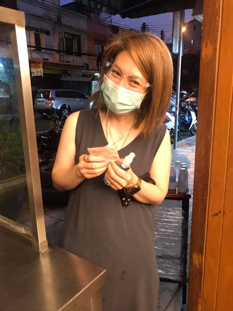 พอพี่เค้าทานเสร็จแล้วเดินไป ยุ้ยก็พ่นแอลกอฮอล์ทุกอย่างที่พี่เขาสัมผัส ไม่ได้รังเกียจ แต่เราต้องใช้ชีวิตอย่างเฝ้าระวัง ไม่ได้รู้สึกกลัวแต่ต้องทำให้เป็นนิสัย เช็ดไปก็รู้สึกเต็มอิ่มในหัวใจ