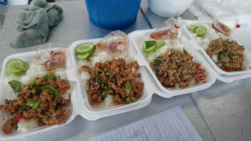 นายสมชาย กมลพันธ์ทิพย์ ผู้บริหาร จึงได้ให้มาช่วยกันตั้งร้านจำหน่ายอาหารข้าวกะเพราสู้โควิด ราคากล่องละ 16 บาท เพิ่มไข่ 4 บาท ก๋วยเตี๋ยว 10 บาท ลูกชิ้น 3 บาท น้ำเปล่า 3 บาท ส่วนบุคลากรทางการแพทย์กินฟรีแบบอิ่มไม่อั้น ซึ่งก่อนหน้านี้ทางนายสมชาย ได้โพสตข้อความผ่านเฟซบุ๊กว่า “พนักงานว่างๆกัน เปิดขาย กระเพราสู้โควิด 16 บาท พรุ่งนี้พบกันนะครับ ตรงข้ามธนาคารกสิกรไทยโพธาราม” สร้างความฮือฮาให้กับชาวโซเชียลอีกครั้ง