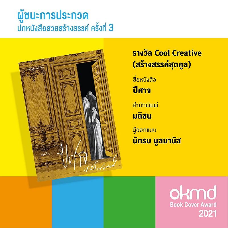รางวัล Cool Creative (สร้างสรรค์สุดคูล) ปกหนังสือเด่น เท่อย่างมีสไตล์ ด้วยไอเดียการออกแบบที่แปลกใหม่ สร้างสรรค์ มีเอกลักษณ์เฉพาะตัวที่แตกต่าง และท้าทายให้ผู้อ่านเปิดดู ได้แก่ หนังสือปีศาจ สำนักพิมพ์มติชน ผู้ออกแบบ คุณนักรบ มูลมานัส