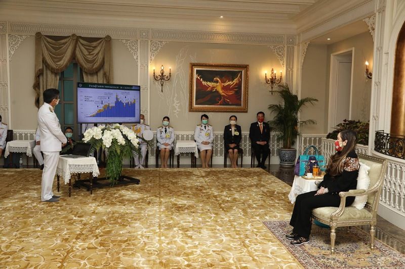 โอกาสนี้ ทรงมีพระดำรัสพระราชทานกำลังใจแก่รัฐบาล ศูนย์บริหารสถานการณ์การแพร่ระบาดของโรคติดเชื้อไวรัสโคโรนา2019 หรือ ศบค. แพทย์ พยาบาล บุคลากรทางการแพทย์ ที่เป็นกำลังหลักทุ่มเทการทำงานเพื่อดูแลรักษาผู้ป่วยโรคติดเชื้อไวรัสโควิด-19 อย่างเต็มกำลังความสามารถ และพระราชทานกำลังใจแก่ประชาชนและผู้ติดเชื้อฯ ให้หายเป็นปกติโดยเร็ว