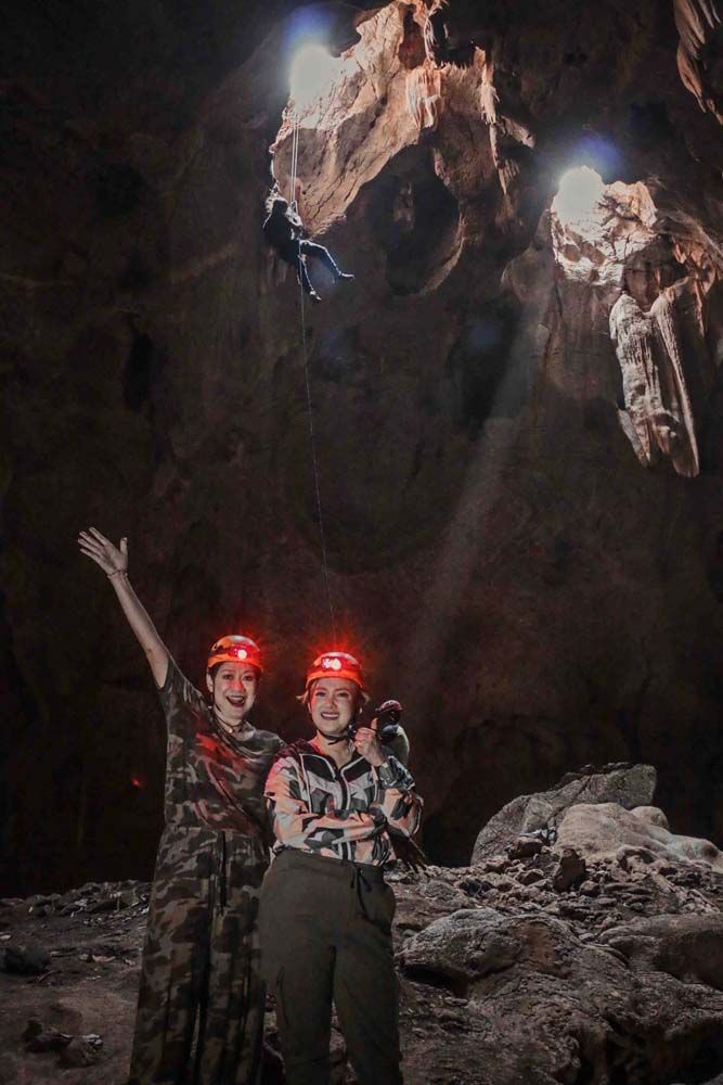 ‘คุณน้ำผึ้ง-น้อย’ โรยตัวลงถ้ำ ละลานตาถ้ำผาไท